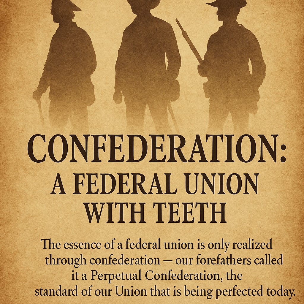 In this historical light, Confederation does not mean disunity. Instead, it means putting teeth into Federalism—ensuring that the constitutional compact between sovereign States is respected, enforced, and operational. Without confederative enforcement, a federation becomes symbolic rather than functional: principles remain on paper, but without structural means to guarantee them. Confederation provides the enforcement, accountability, and duty necessary to preserve liberty under law.
